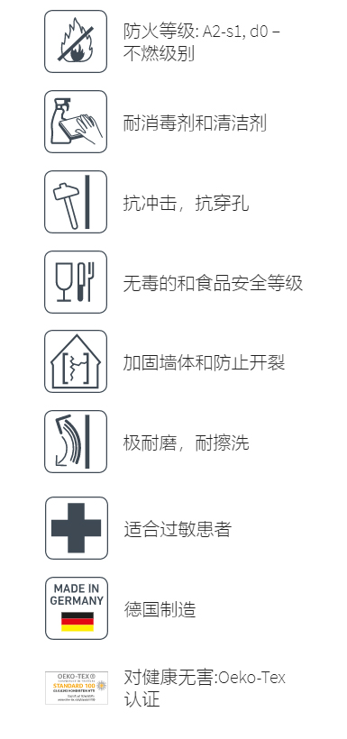 SYSTEXX防火壁布的四種產(chǎn)品,與SYSTEXX防火粘結(jié)劑共同使用,可達(dá)到A2-s1,d0防火